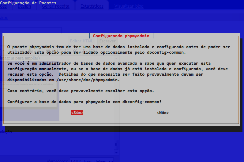 Selecione a opção sim , para que automaticamente seja criado uma base de dados para o funcionamento do phpmyadmin.