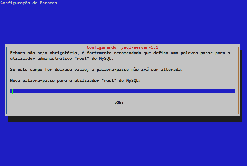 Preste atenção quando a tela acima for exibida para não digitar uma senha de root que você possa esquecer, será solicitado que você repita a senha novamente e após informar a senha e confirma-la a instalação será concluída.