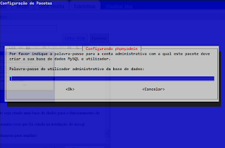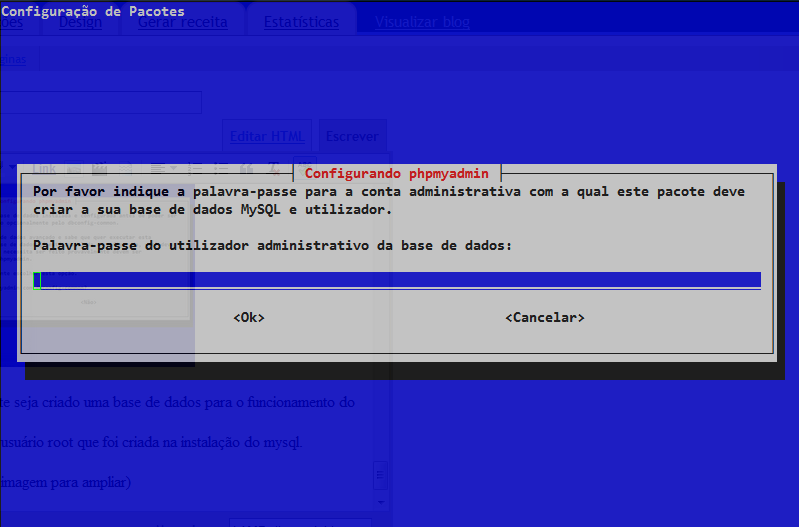No meio da instalação a seguinte tela será apresentada para definicão do usuário root ao mysql :