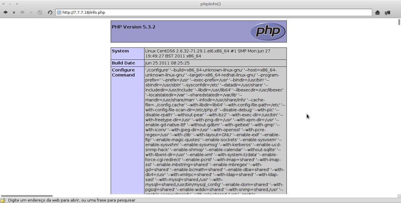 Salve o arquivo e acesse o ip do seu servidor /info.php . No meu caso 7.7.7.18/info.php