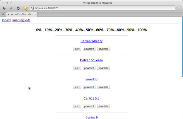 No próprio site do virtualbox é indicado o uso do phpvirtualbox mas eu descartei essa possibilidade pois é necessário ter um webserver instalado com php e isso já basta como um problema!