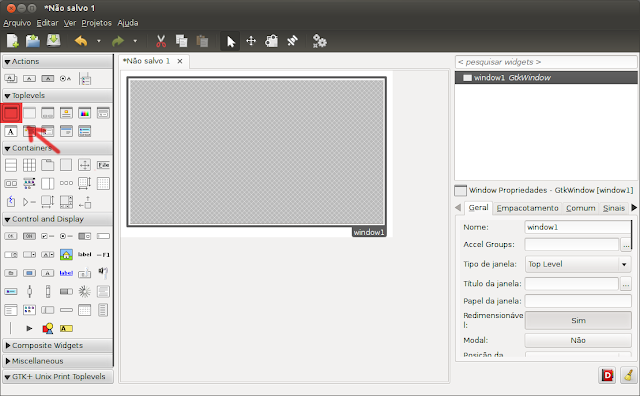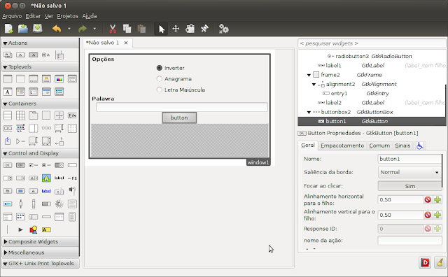 Com isso a interface está basicamente pronta, basta salvar o trabalho em um arquivo .glade que toda a interface estará disponível em formato xml.