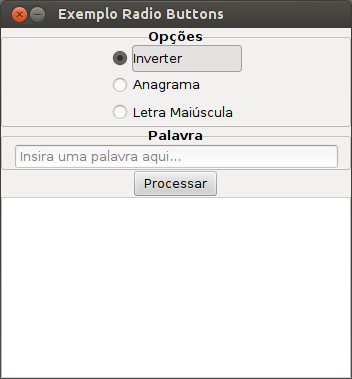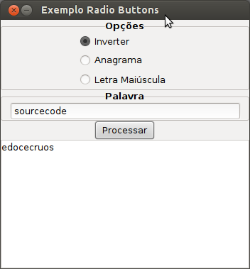 Basicamente irei mostrar como criar um programa que irá modificar uma determinada palavra, e as opções de modificação desta palavra será definida por um radio button selecionado em um grupo de radio buttons.